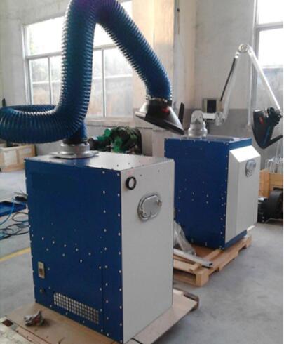 焊煙除塵器通過風(fēng)機引力作用,焊煙廢氣經(jīng)萬向吸塵罩吸入設(shè)備進風(fēng)口,設(shè)備進風(fēng)口處設(shè)有阻火器,火花經(jīng)阻火器被阻留,煙塵氣體進入沉降室,利用重力與上行氣流,首先將粗粒塵直接降至灰斗,微粒煙塵被濾芯捕集在外表面,潔凈氣體經(jīng)濾芯過濾凈化后,由濾芯中心流入潔凈室,潔凈空氣又經(jīng)活性碳過濾器吸附進一步凈化后經(jīng)出風(fēng)口達(dá)標(biāo)排出。