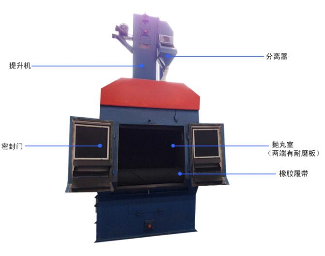 Q324履帶式拋丸機(jī)是一種小型的清理沒備,主要由清理室、拋丸器、提升機(jī)、分離器系統(tǒng)、電器系統(tǒng)等部分組成。